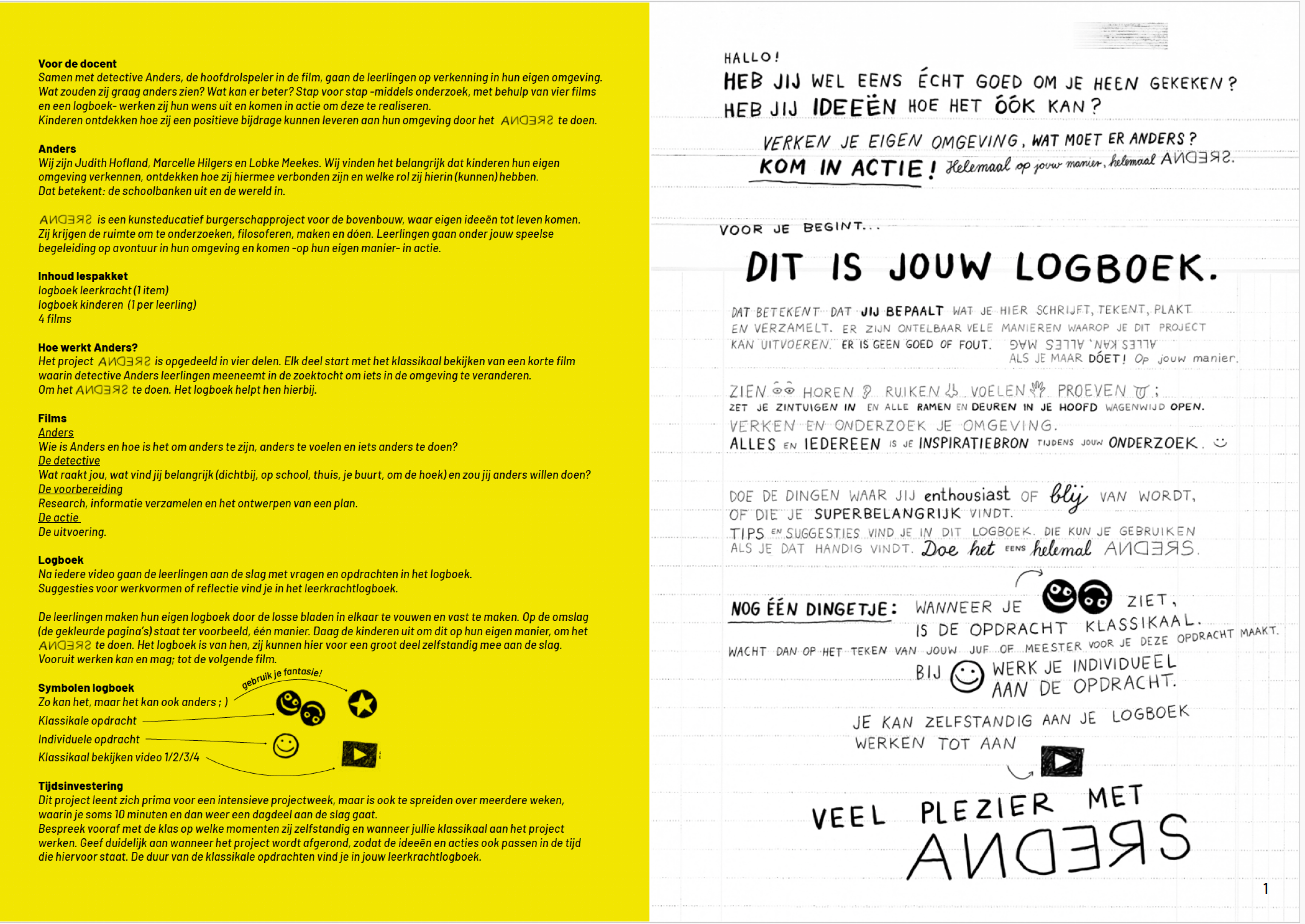 anders zouden willen. Deze wens werken zij met hulp van een persoonlijk logboek, stap voor stap uit, om uiteindelijk zelf een actie op touw te zetten. Door dit project ontdekken kinderen hoe en op welke manier zij een positieve bijdrage kunnen leveren aan hun omgeving door het ANDERS te doen.