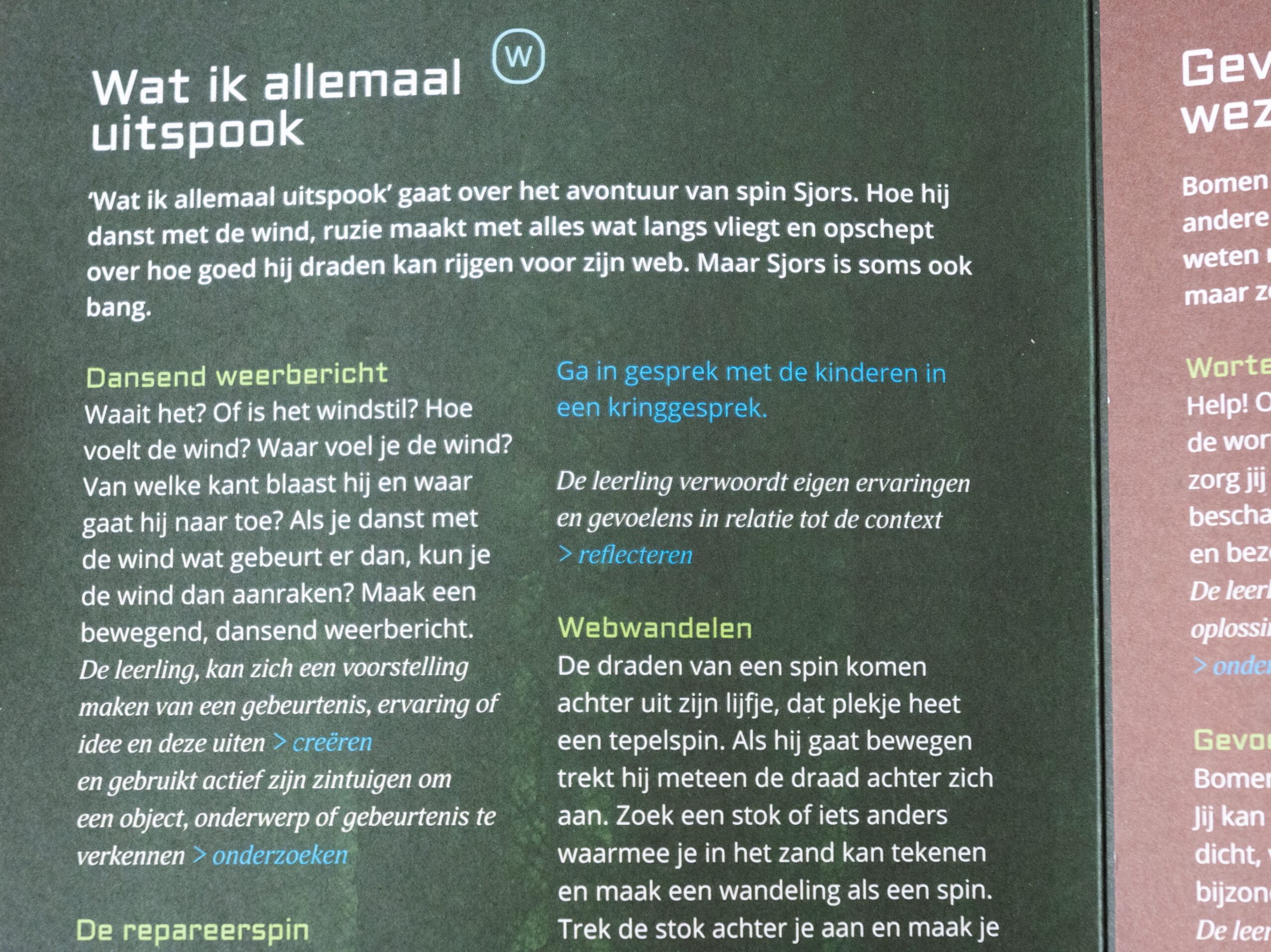 Radio Wonderbos bestaat uit vier uitzendingen die los van elkaar te beluisteren zijn, zonder vaste volgorde. De keuze is aan jou hoeveel en welke er worden aangeboden. Kijk wat past bij de schoolomgeving, de kinderen en jezelf. Natuurlijk grenst niet elke school aan een bos, maar elke bosrijke, groene omgeving is geschikt. Denk aan een park of een diepe tuin met struiken en bomen. Beluister de uitzendingen op locatie, elke uitzending eindigt namelijk met een vraag die de leerlingen uitnodigt direct op onderzoek uit te gaan. Dit kan met de hele klas, maar in kleinere groepen is het wellicht makkelijker om sámen met de kinderen op avontuur te gaan, vragen te beantwoorden en ontdekkingen te stimuleren.